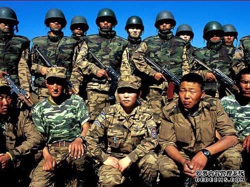 • 资料图:"可汗探索2008"演习上的蒙古国士兵。