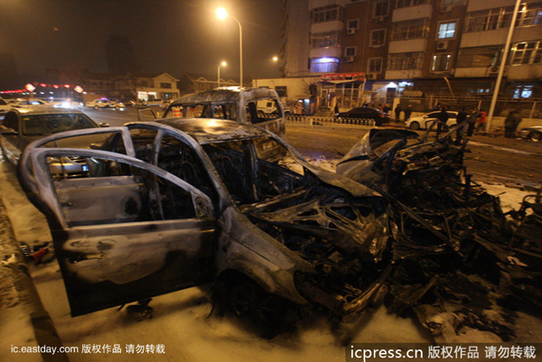 2013年02月24日,元宵节晚9时许,天津市南开区水上北路天骄园小区前燃放烟花爆竹不慎发生爆炸,导致停放在该小区门前的四辆私家车被炸毁,小区门楼被炸坏,多户居民的门窗玻璃被震坏,现场十分惨烈。截止当晚11时,火情已被熄灭。事故现场暂无人员伤亡。