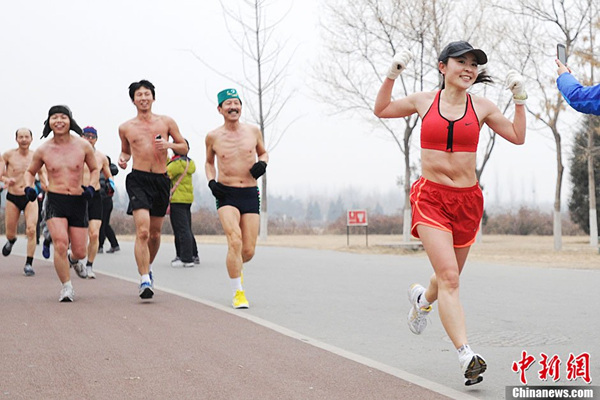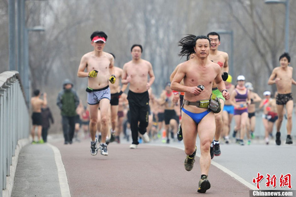 北京民众不惧重度污染参加“光猪跑”(1)(5)