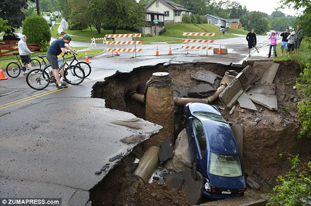 美国巨型塌陷地洞致一男子失踪原因不明(1)(2)