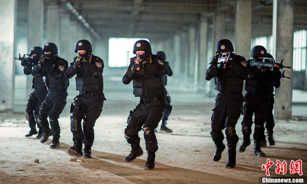 228日,安徽省淮北市公安局特警支队干警在进行巷战反恐课目演练。当日,安徽省淮北市公安局特警支队开展春季巷战反恐科目演练,现场进行了特警战术动作、处置群体性事件队形演练和劫持人质暴力案件处置等7个课目的演练,提升了特警的战斗能力。