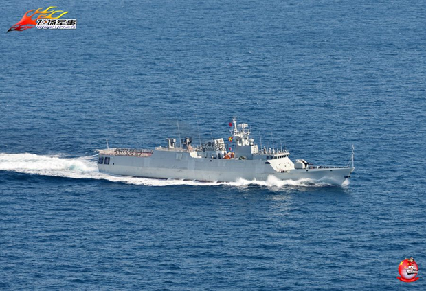 该艘护卫舰在海上进行测试时的场景