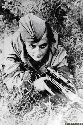 1941年6月22日,德国入侵苏联时,柳德米拉已经是24岁的基辅国立大学主修历史的学生了。和许多同学一样,柳德米拉报名参加了红军,她近乎标准的女军人仪表赢得了招兵官员的亲睐,但是她却表示希望拿起一支步枪到前线直接打击敌人。招兵军官笑了起来,问她知道多少关于步枪的知识。柳德米拉马上熟练的操起了瞄准的架势。但是军官仍然试图劝说柳德米拉作一个战地护士。但是被柳德米拉没有商量余地的拒绝了。最终,柳德米拉参加了红军,到25步兵师做了一名步枪射手。